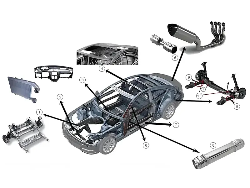 تعتمد جميع هذه المكونات على عمليات الكبس لضمان الصلابة والقوة اللازمتين، وهما عنصران أساسيان لتحقيق ثبات السيارة وسلامتها العامة أثناء الاستخدام.